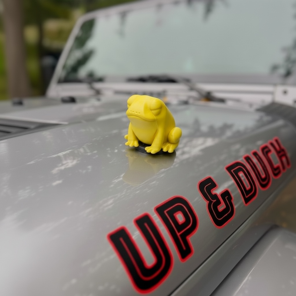 The BIG FROG is your loyal, laid-back companion, built for bumpers, hoods, and trail-ready adventures. With a bold pop of color and that signature “Up & Duck” charm, this little guy sticks with you no matter where the road leads.